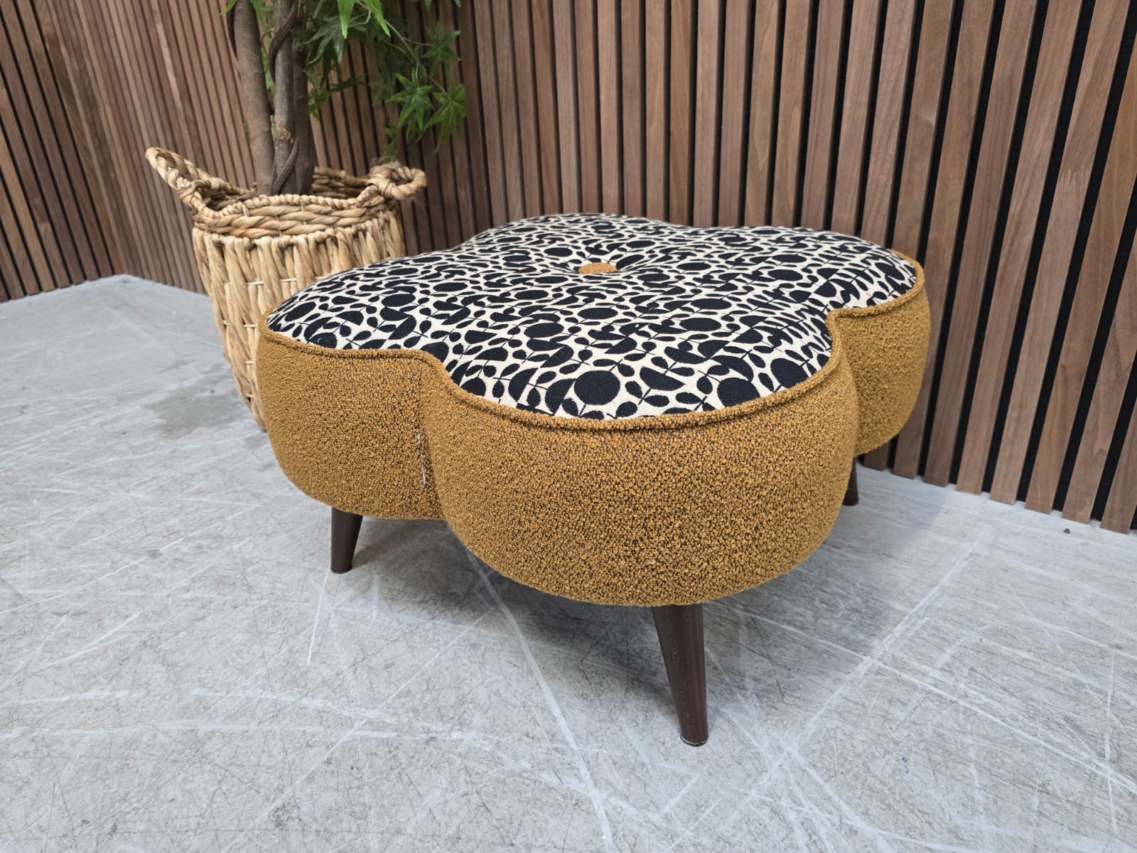 Designer Label Arklow Mid Century Modern Footstool In Patterned Fabric