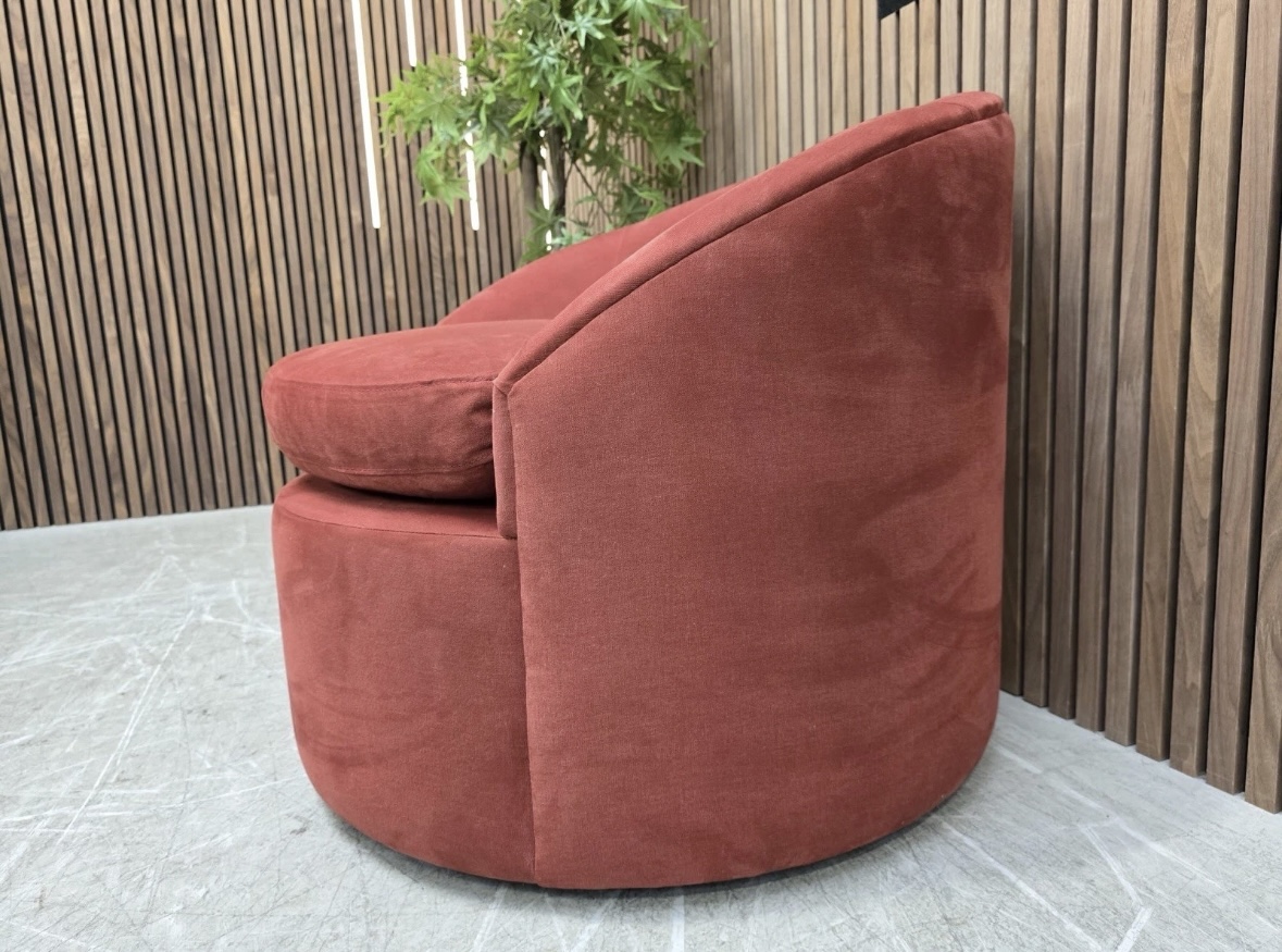 Elegant Yet Playful, Quinn’s Curved Design Brings A Retro Vibe That’s The Perfect Statement, Featuring A Hidden Swivel Mechanism For Ease And Comfort And A Recessed Plinth That Creates A Floating Effect. With Stitching Detail On The Back, The Chair Oozes Sophistication.