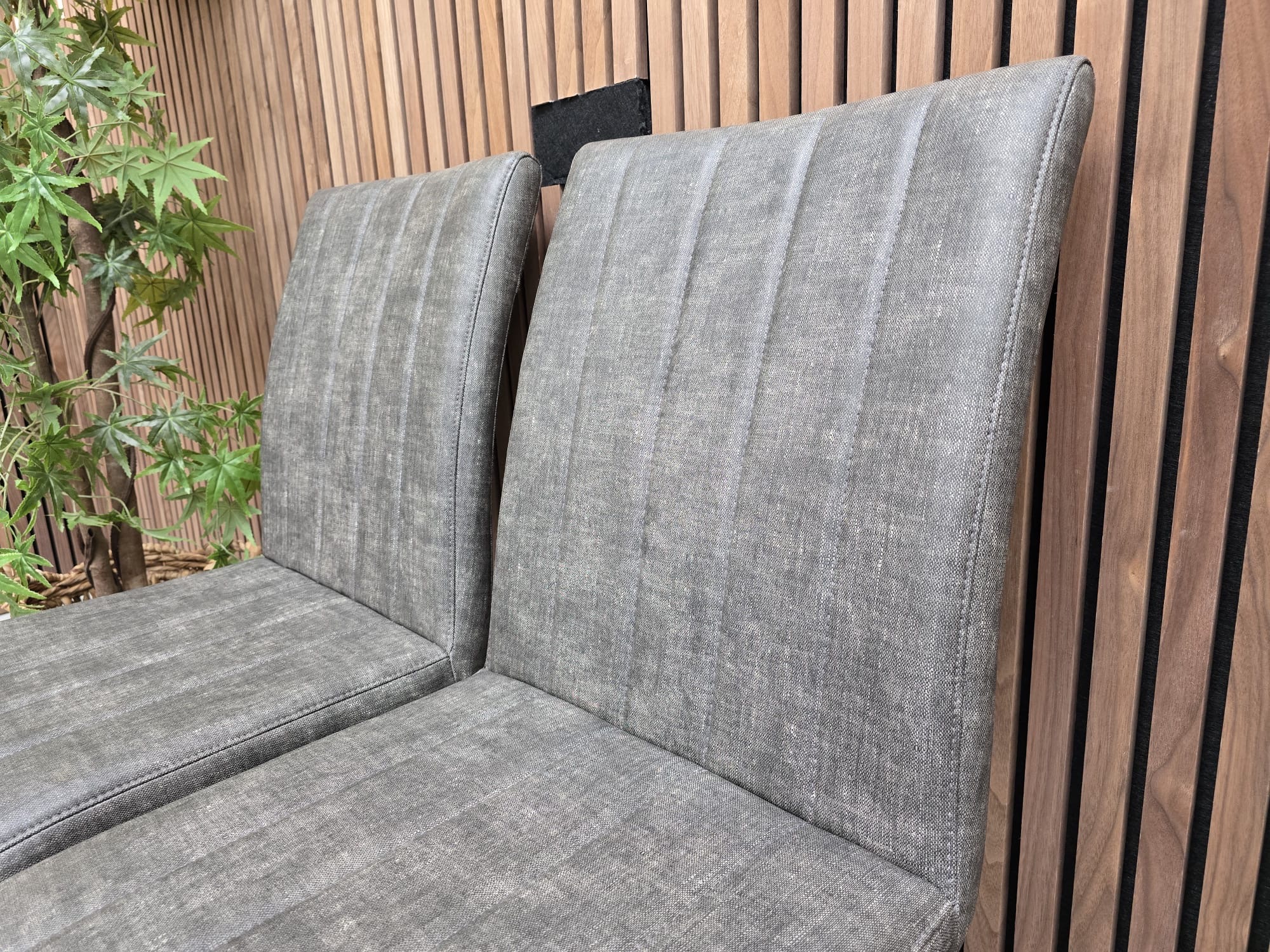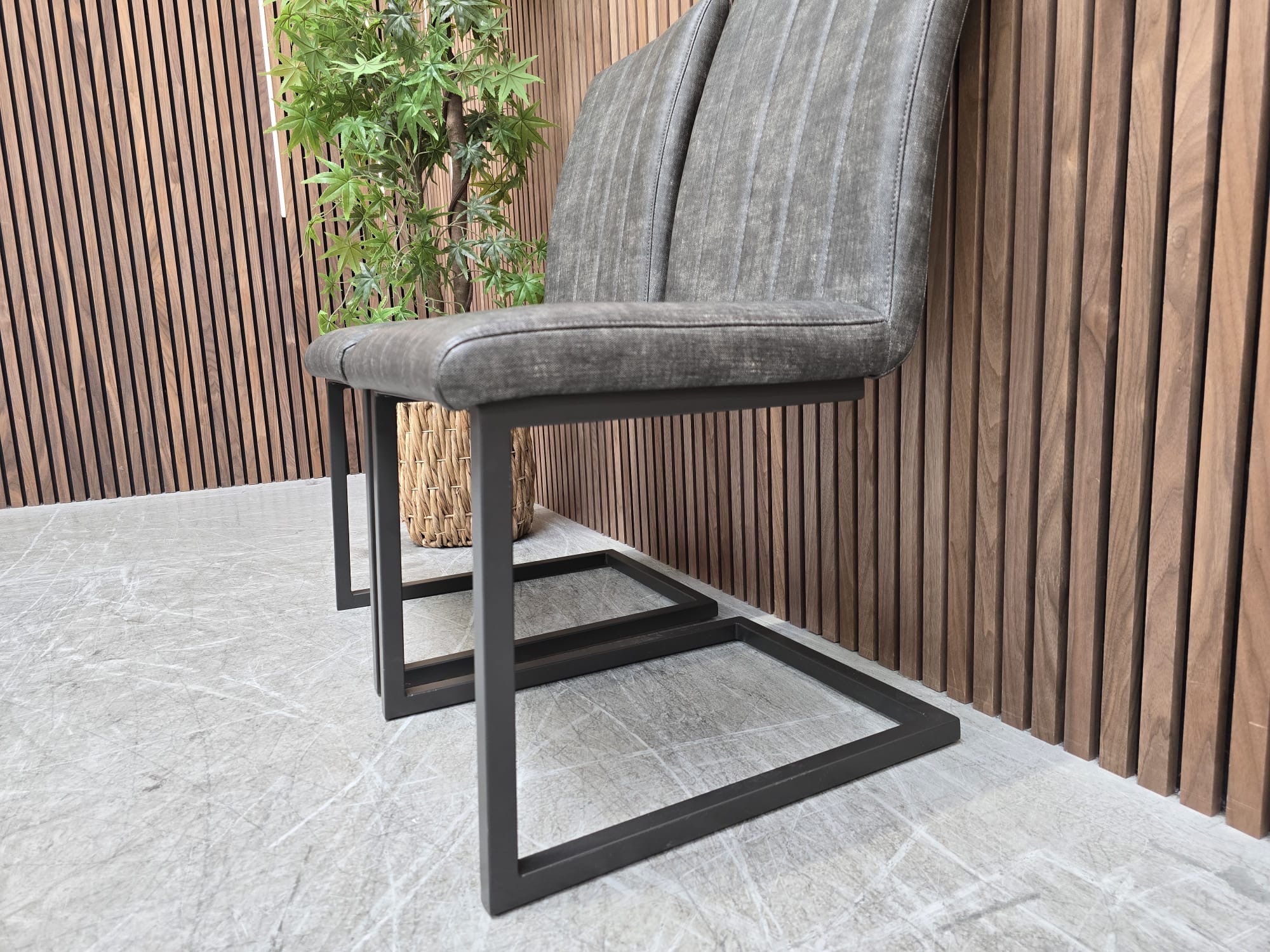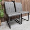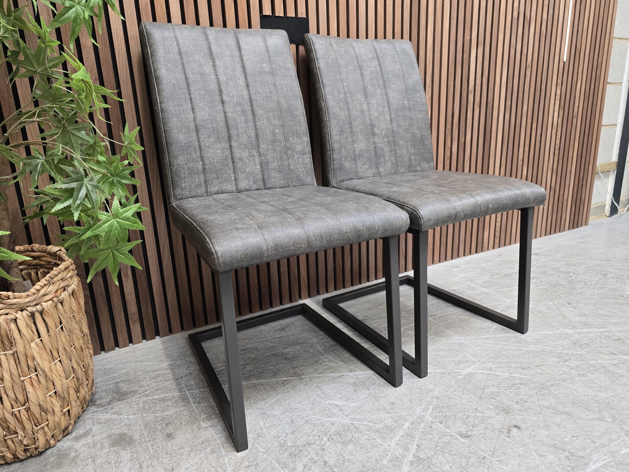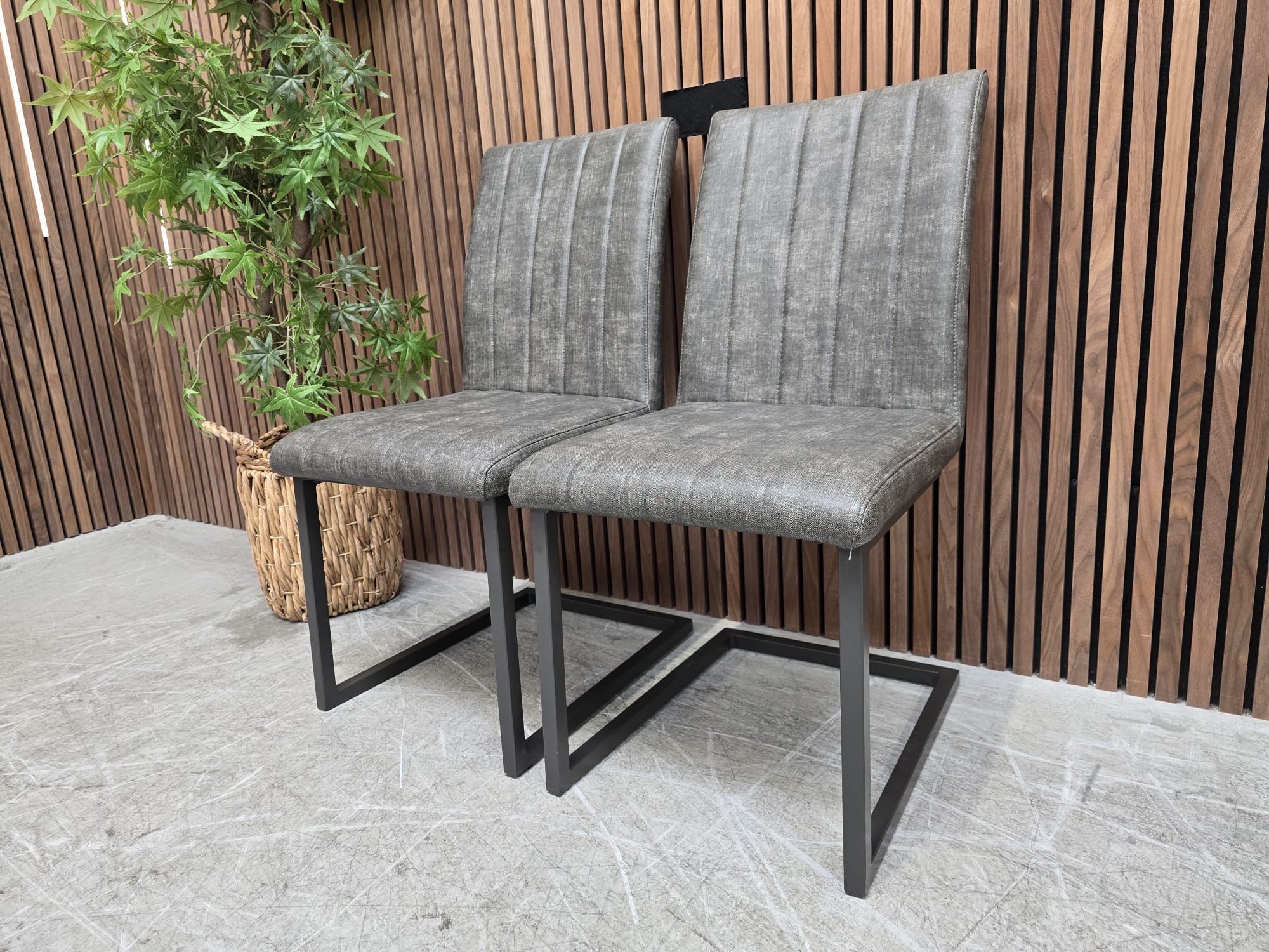 2x Contemporary Grey Faux Leather Ribbed Dining Chairs RRP-£370