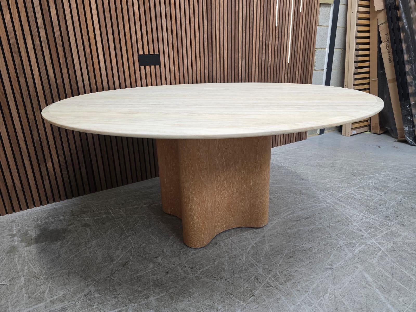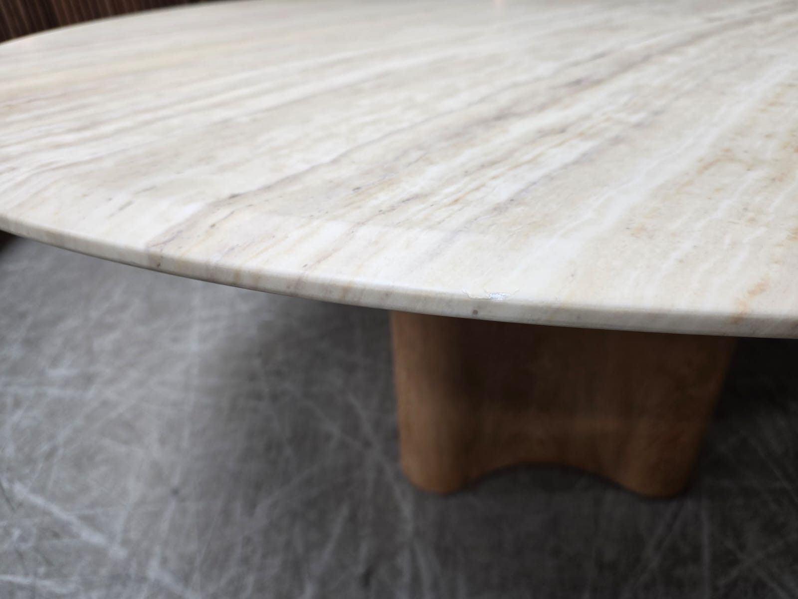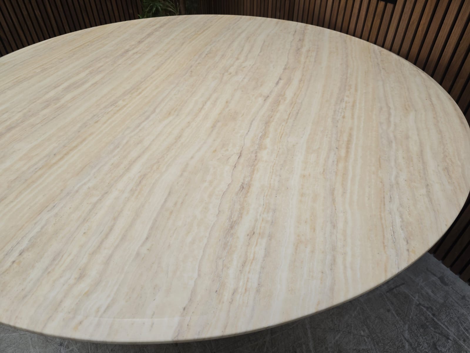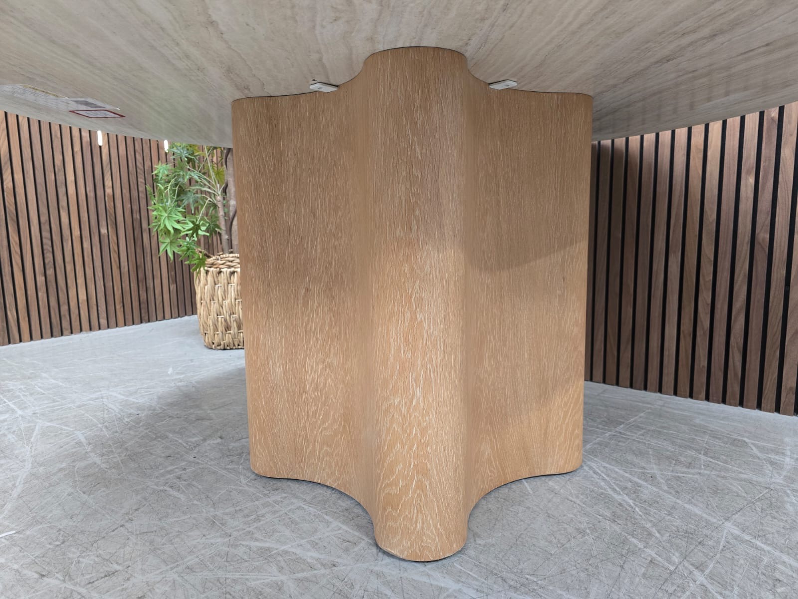 The Traver Collection Showcases The Perfect Fusion Of Natural Elements And Post-Modern Design. Featuring A Fluid Wave-Like, Sculpted Pedestal Base, Evoking Sculptural Tree Trunks; And A Travertine “Wrapped” Top, Boasting Opulence, With Its Smooth, Matte Surface.