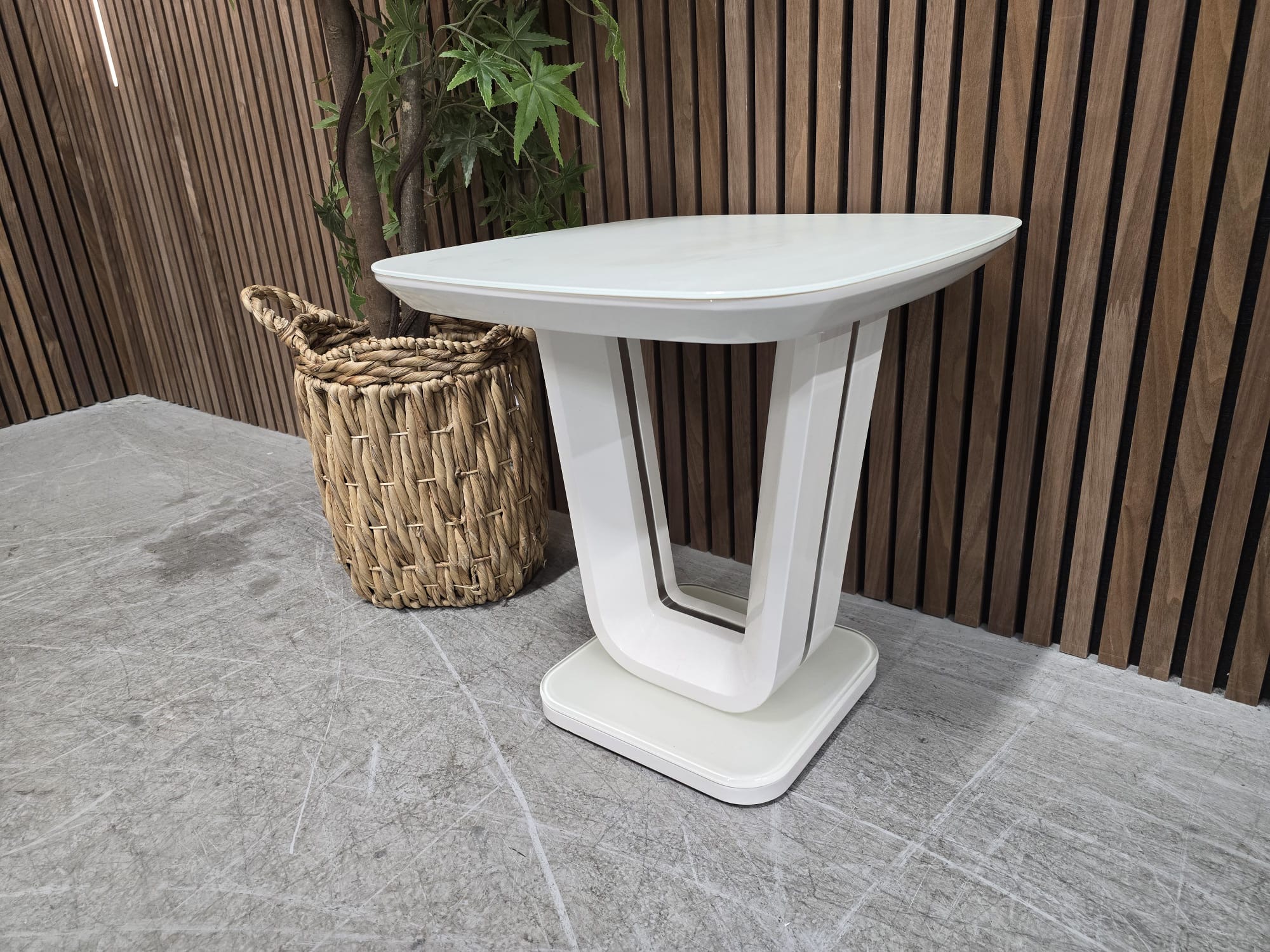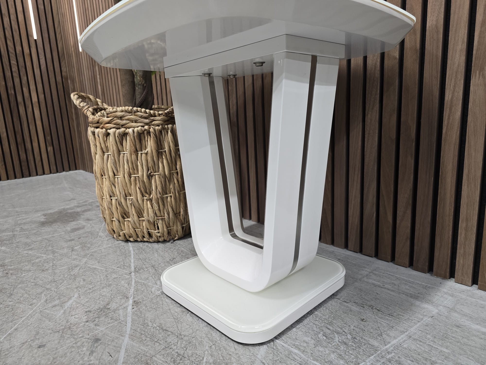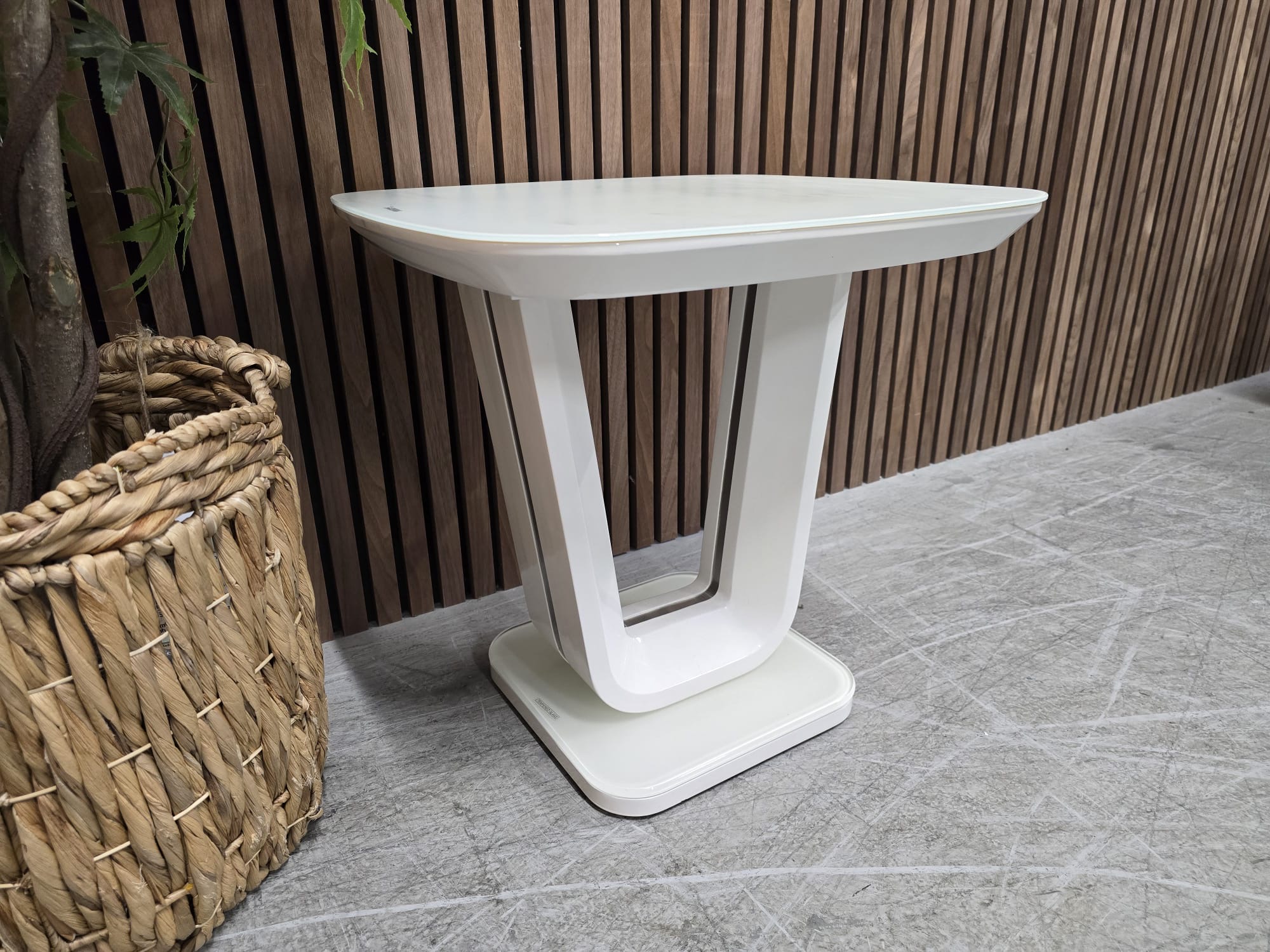 Here’s The Perfect Modern Lamp Table For A Compact Living Room. With Its High-Gloss Finish, Glass Top And Pedestal Base, It’s So Striking. Amazing Value Too.