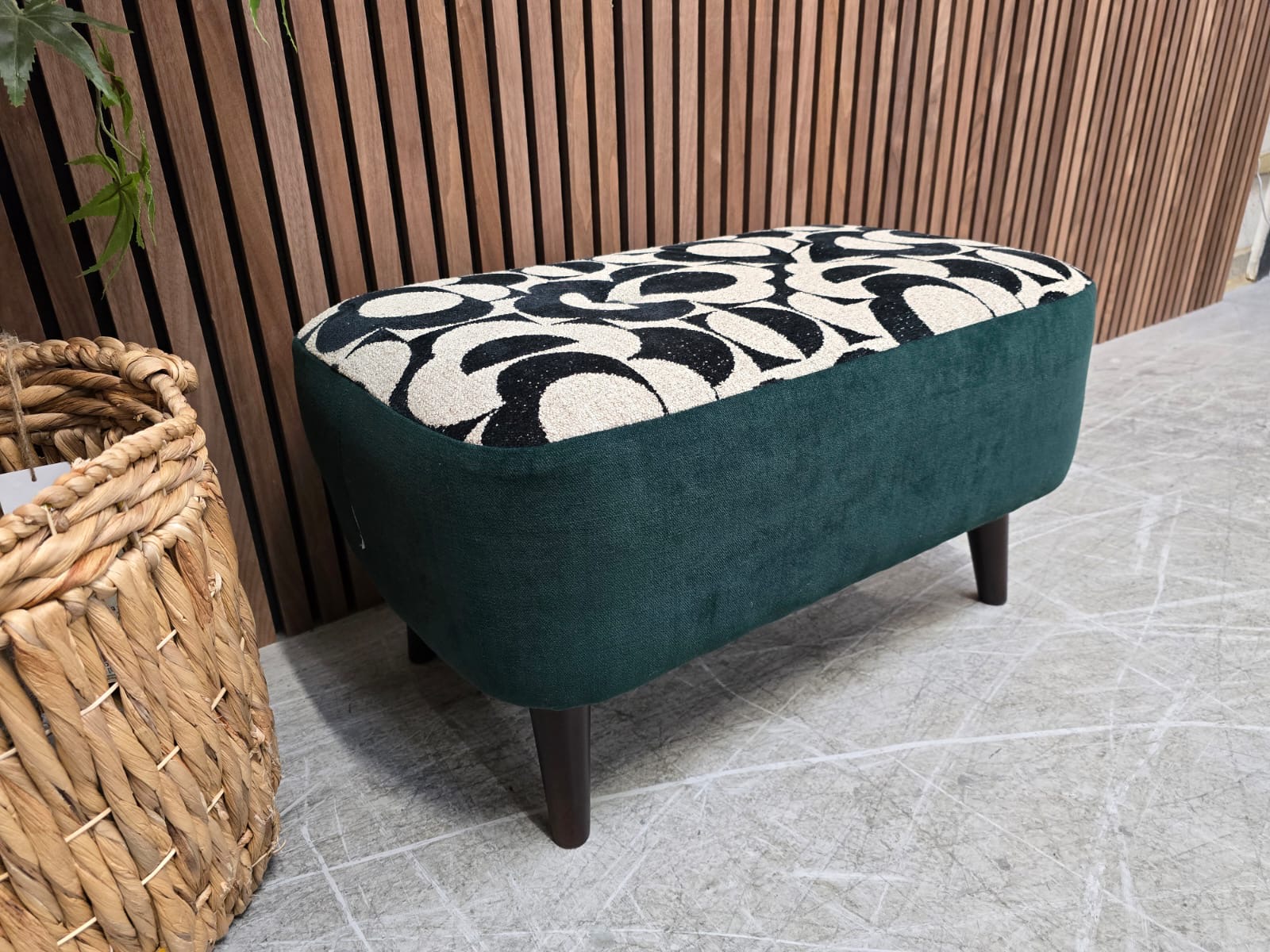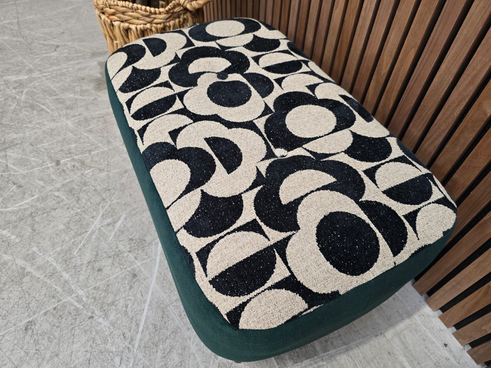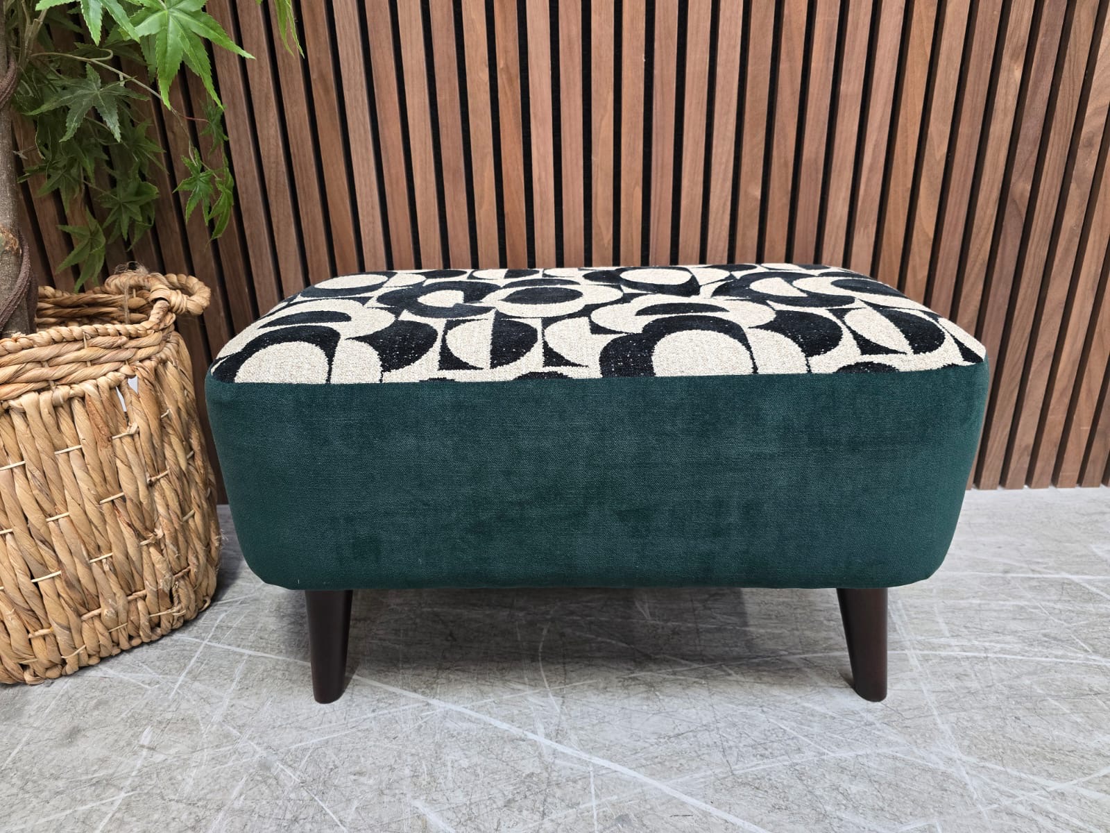 Designer Label Donegal Footstool in Jigsaw Monochrome & Forest Velvet RRP-£395