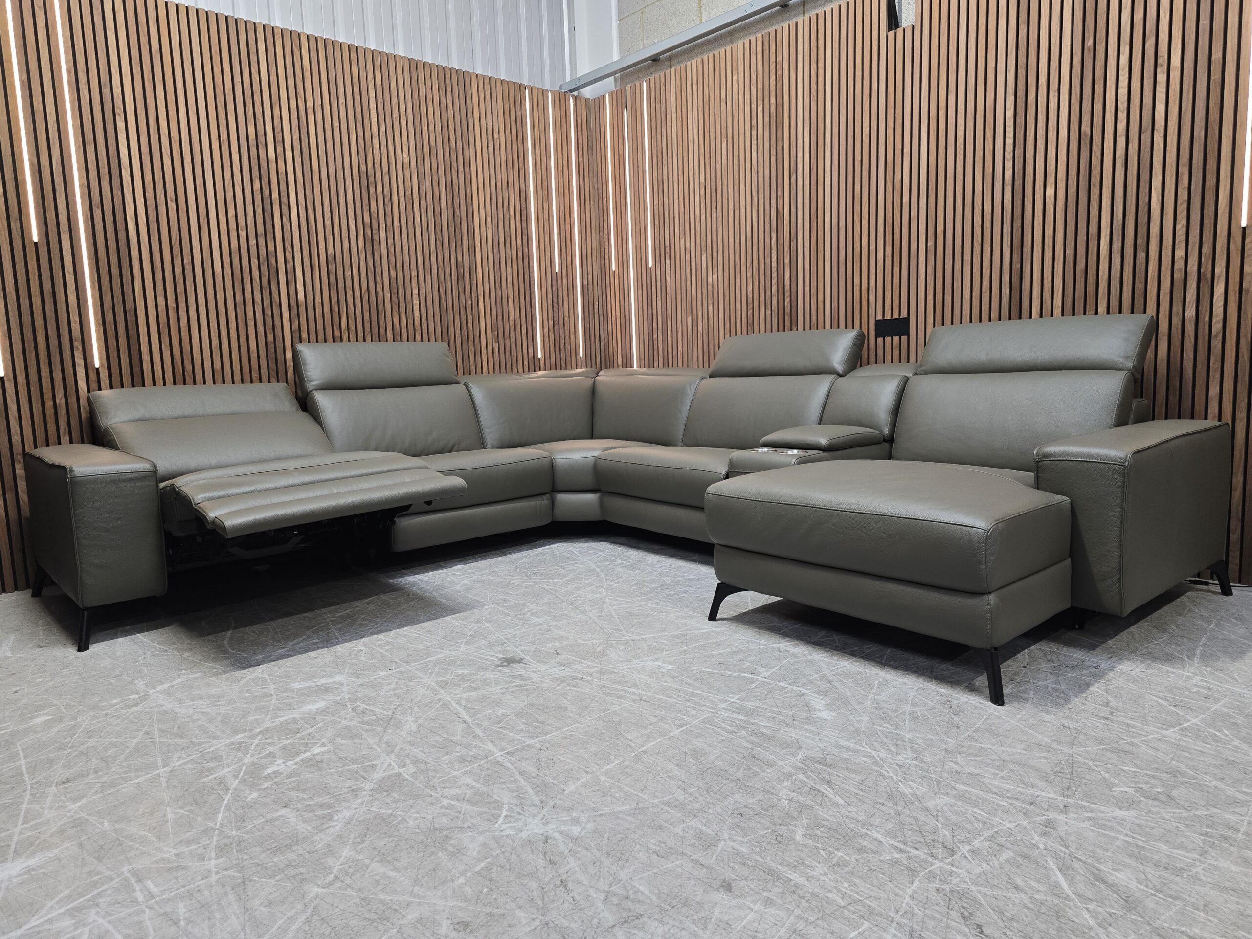 Nick Scali Vittorio Modular Power Recliner Corner In Dark Olive Leather RRP-£3999